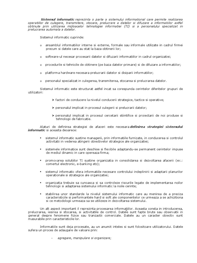 Existenta unui raport de compozitie, sau apartenenta prin care sistemul informatic este o parte a sistemului informational Citeste acum toate articole despre sistemul informatic integrat la invatamantului pe digi24.ro. Sistemul informaional i sistemul informatic.